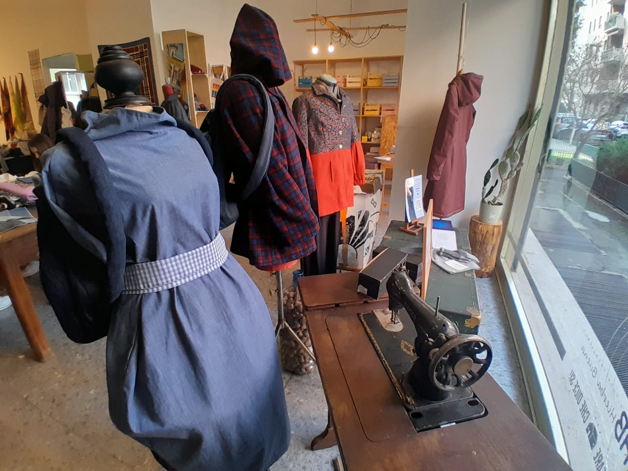 Bottega, sartoria, punto di incontro e formazione, alveare, laboratorio…Dressing Piuma è tutte queste cose e anche di più. Due luci nel cuore di Borgo Palazzo a Bergamo ospitano questa realtà interessante e composita, che nasce dall’associazione La Terza Piuma, fondata nel 2014, grazie alla forza creativa e valoriale di Alessandra Gabriele, che assieme ad un gruppo di altre persone crede nel consumo consapevole e nel rispetto ambientale. Lo spunto del nome arriva dalla favola dei fratelli Grimm “Le Tre Piume”, la cui morale ci ricorda che la bellezza si nasconde sempre sotto i nostri occhi. Sono passati oltre 10 anni da allora e le idee continuano a portare nuove occasioni di contaminazione fra tessile, sociale, culturale.